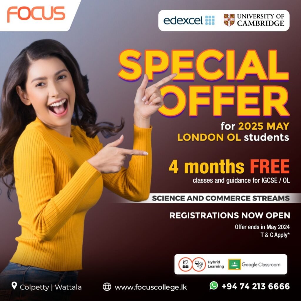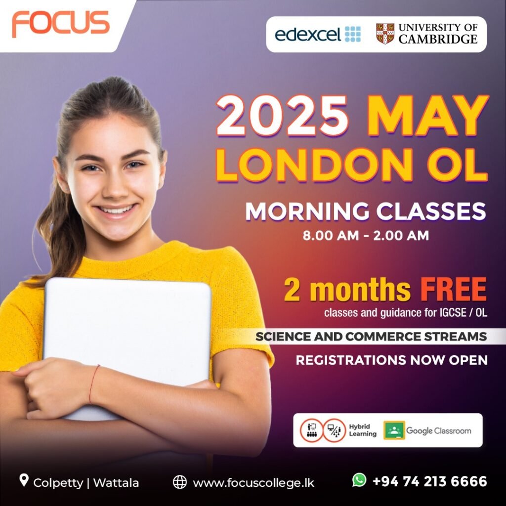 Physical classes at our Colombo campus plus live online sessions via Google Classroom with recorded lessons on demand.