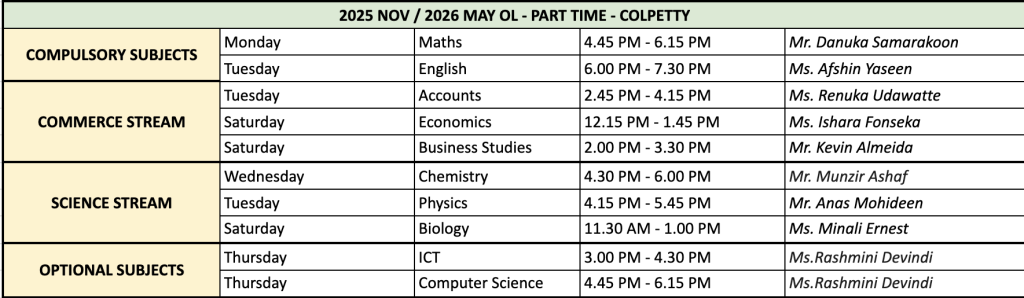 ‘OL in a Flash’ is a programme where we complete the syllabus and arrange the student to sit for OL / IGCSE with in 12 months (1 Year) as a Fastrack programme.